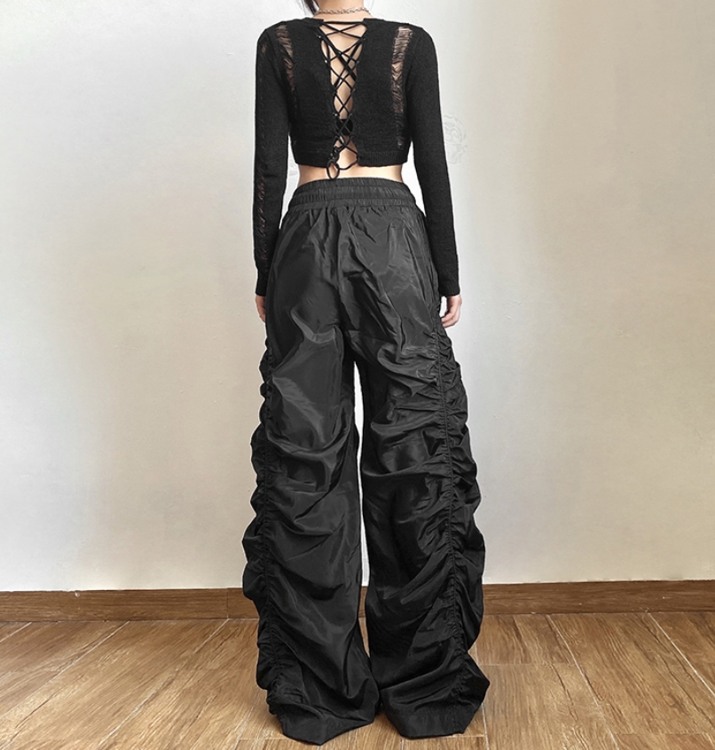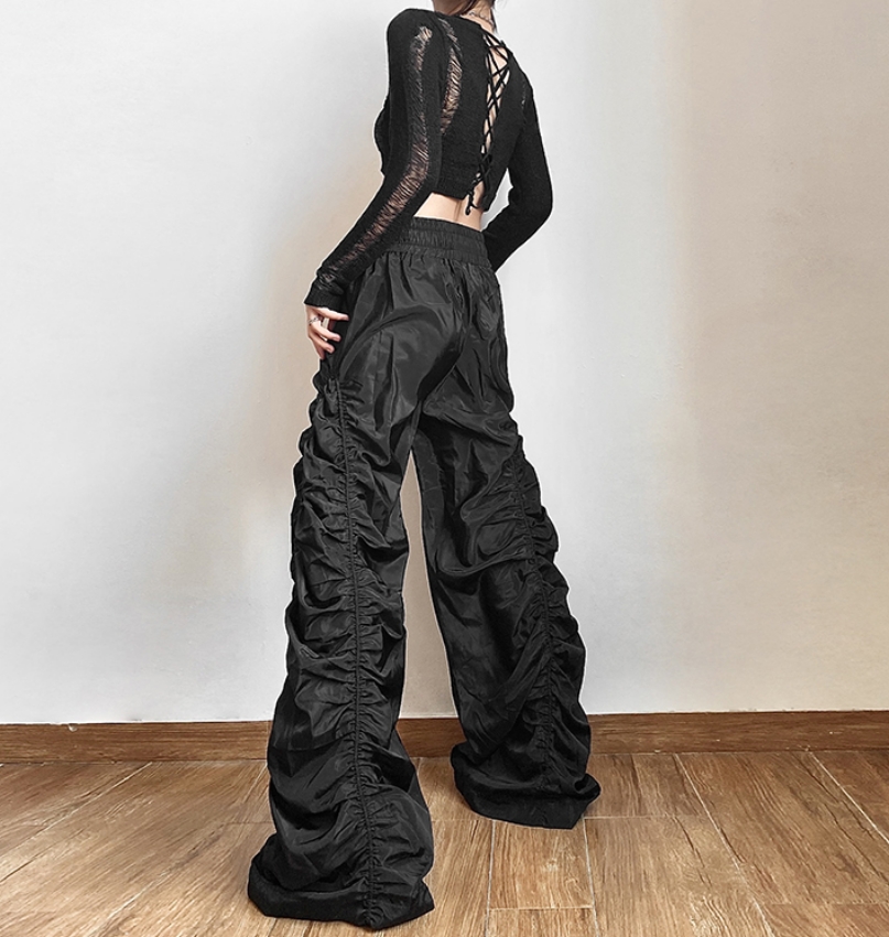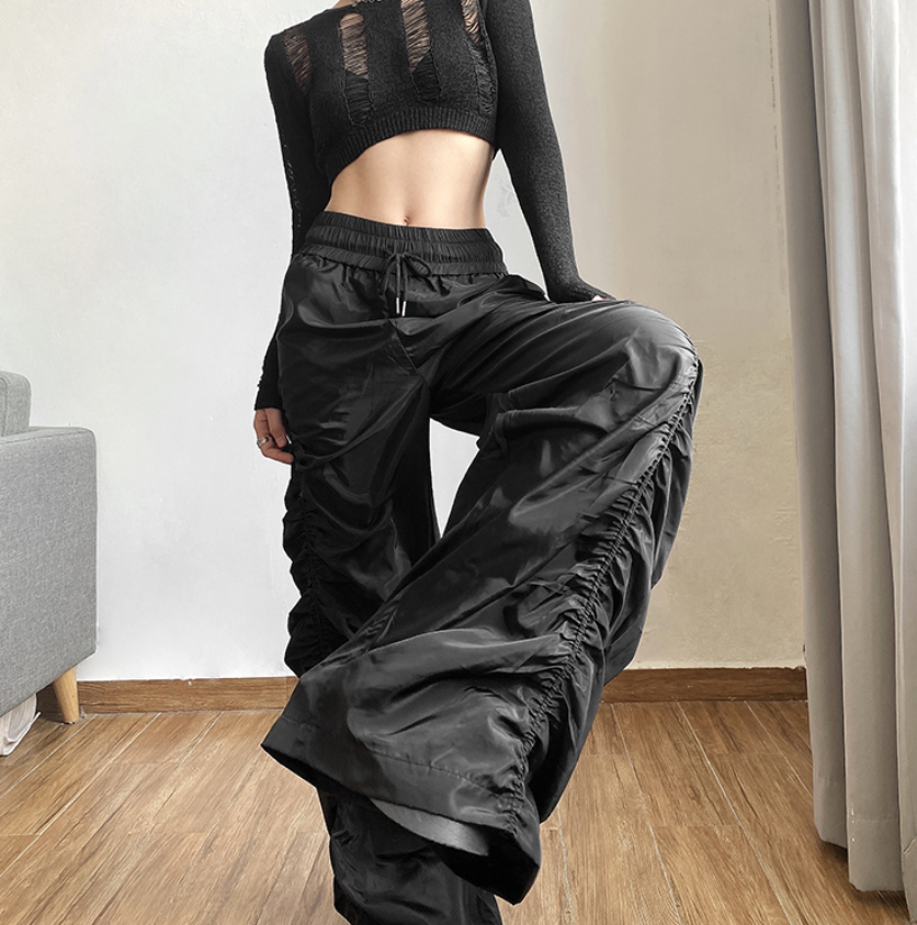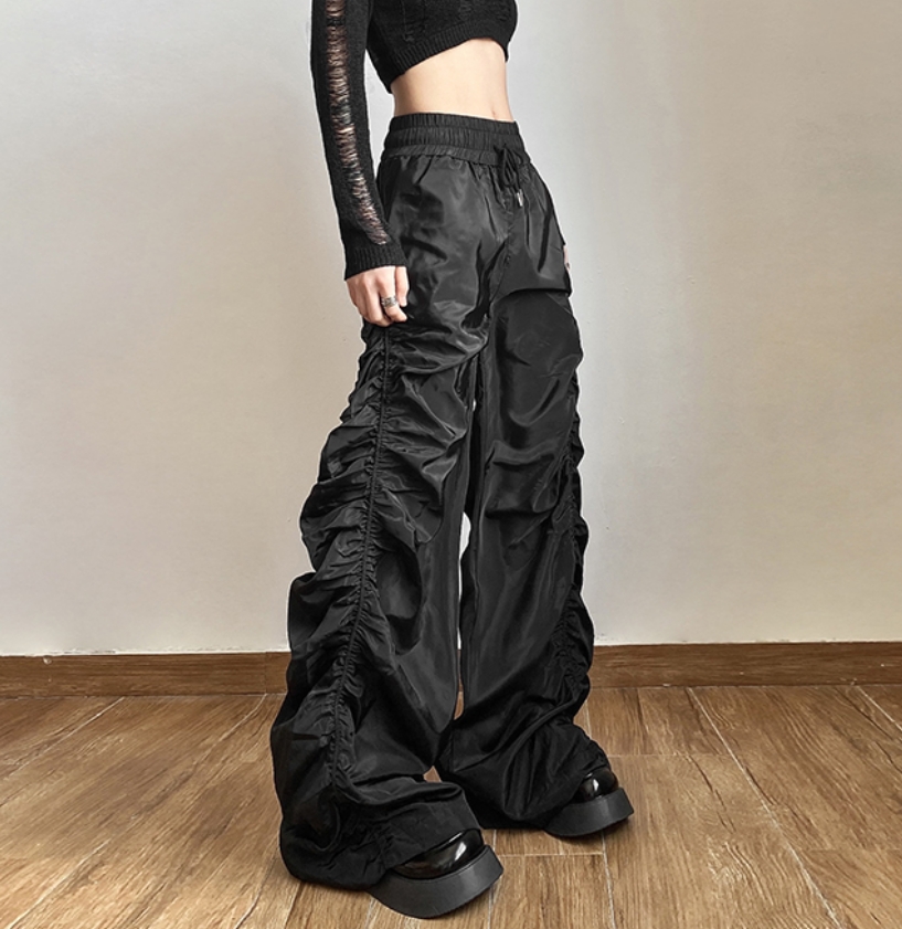 Vintage Baggy Hippie Punkrock Crinkle Sidesline Wide Leg Oversize Trousers Party Dancing Occasion Streetwear Amazing