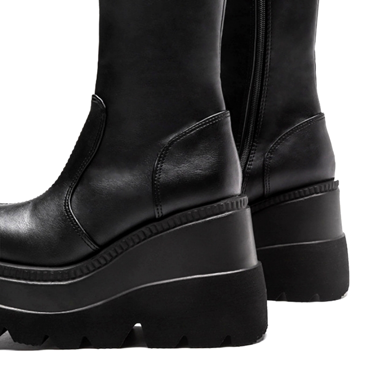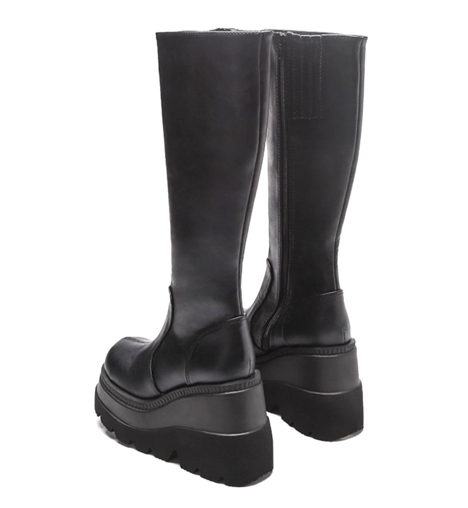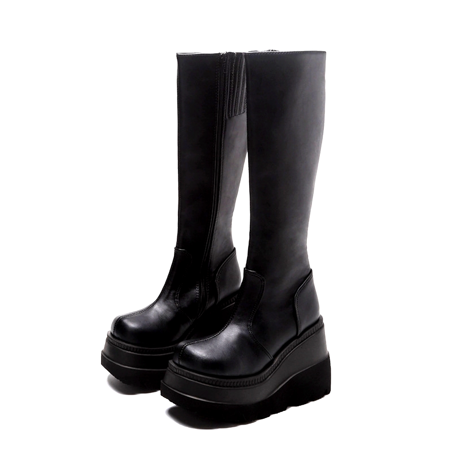 Vintage Faux Leather Thick Platform High Zipper Wedge Women Warm Boots Y2K 90s Party Highstreet Barclub Amazing