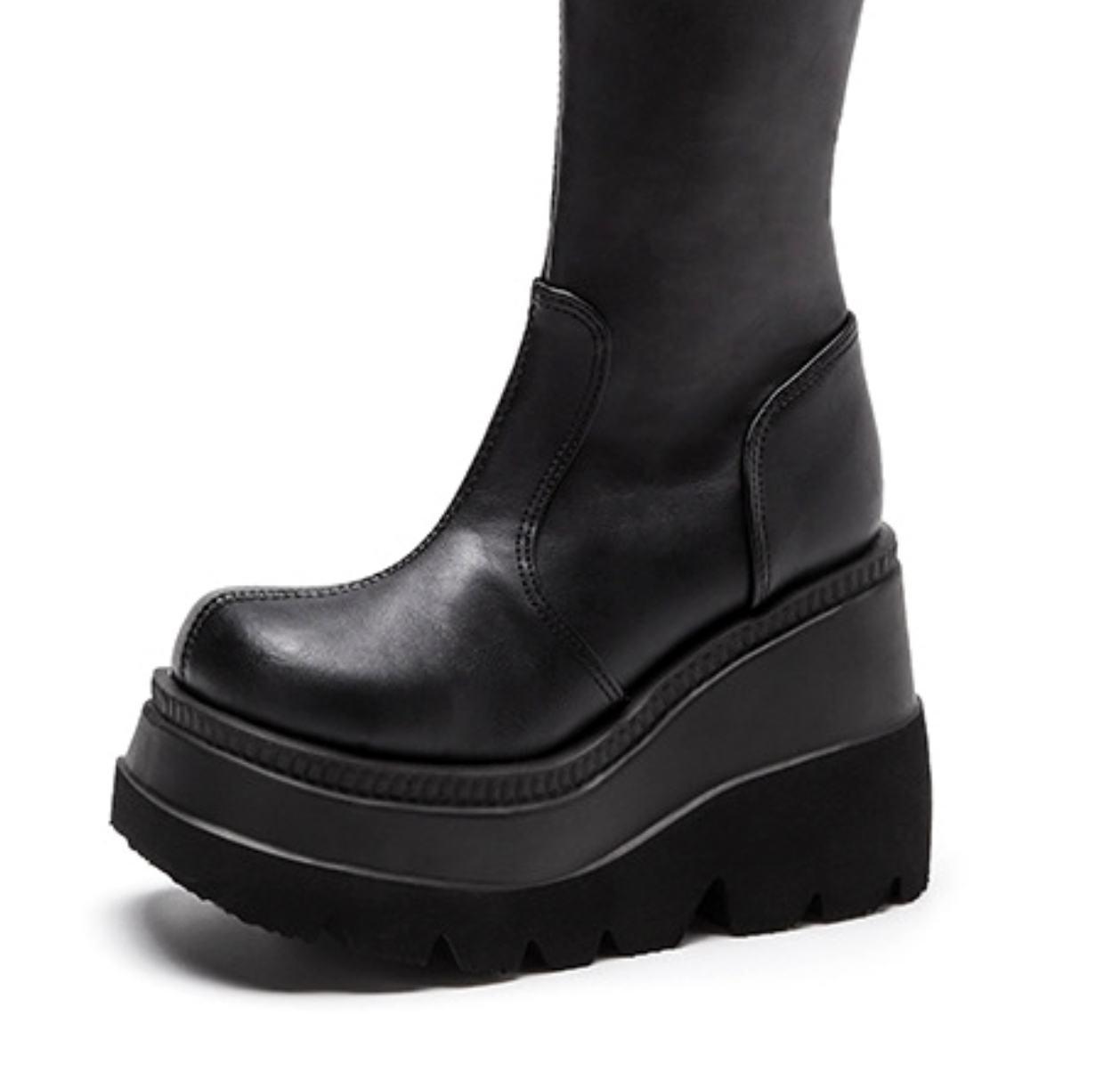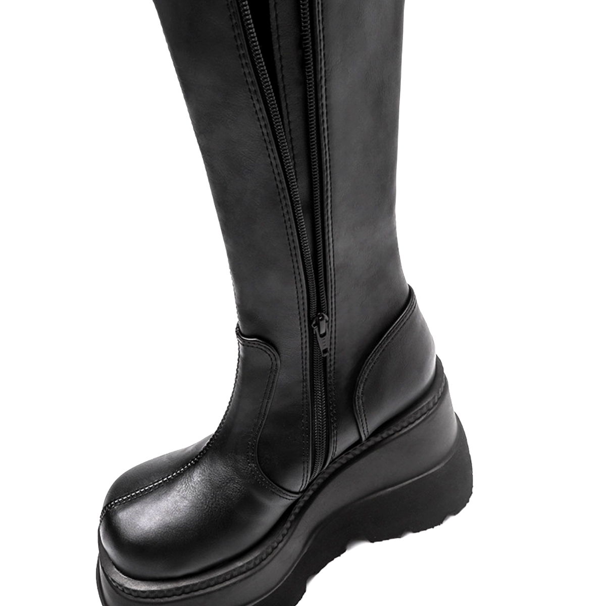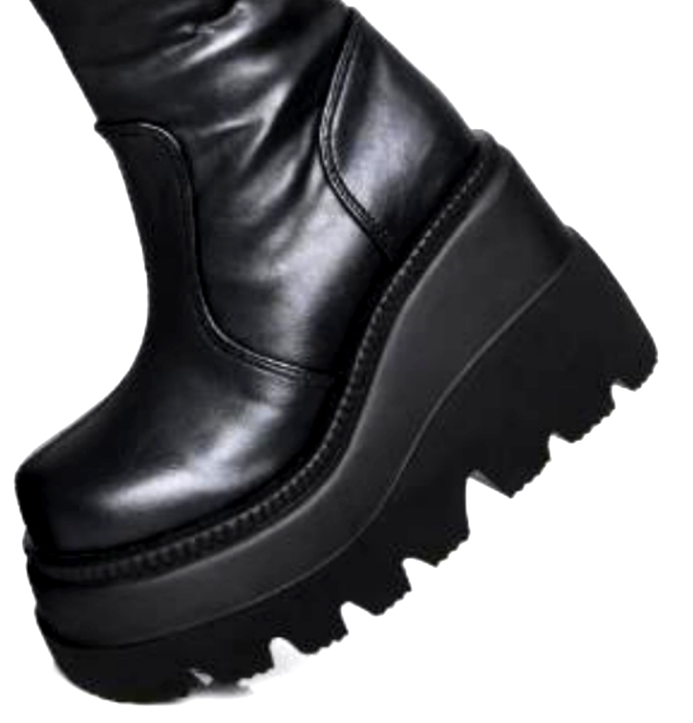 Vintage Faux Leather Thick Platform High Zipper Wedge Women Warm Boots Y2K 90s Party Highstreet Barclub Amazing