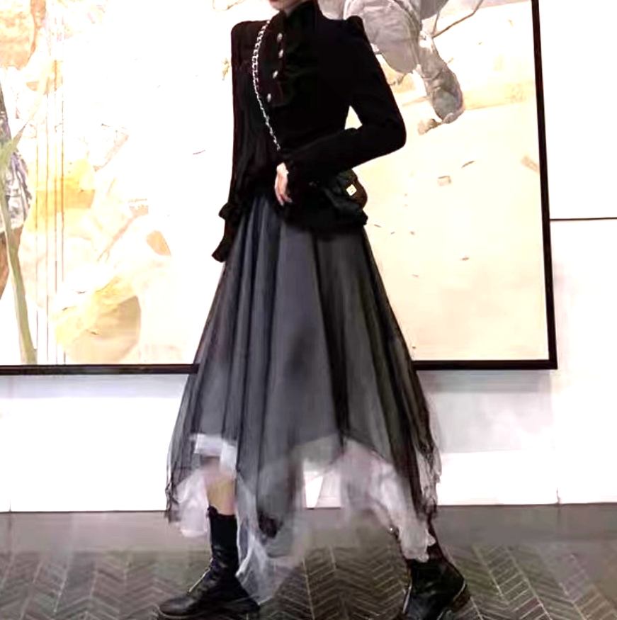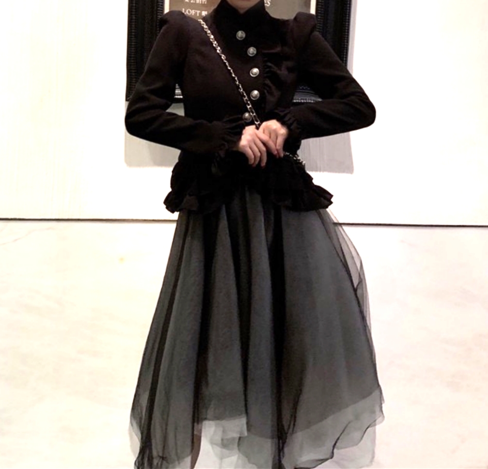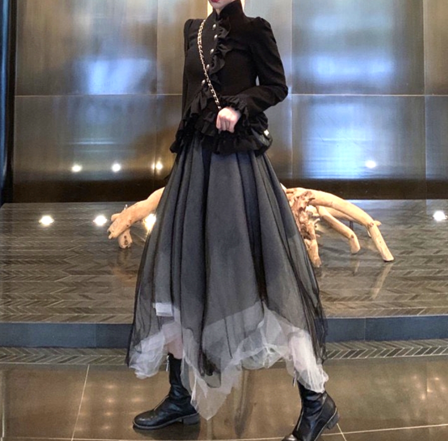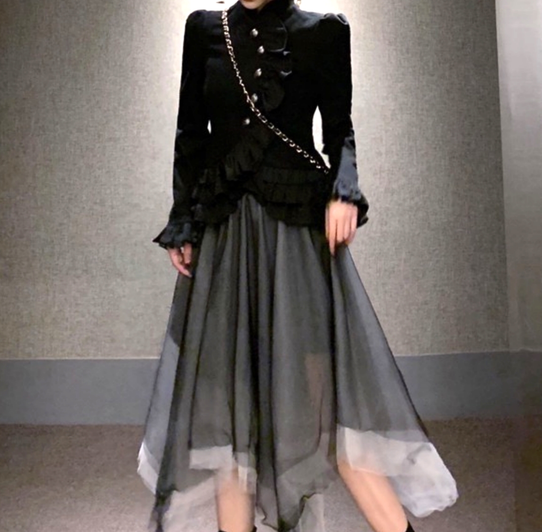 Vintage Gothic Set Aysmmetric Layers Lace Dress Adorable Ruffle Top Blouse Y2K 90s Streetwear Party Event Nightclub Dance Amazing