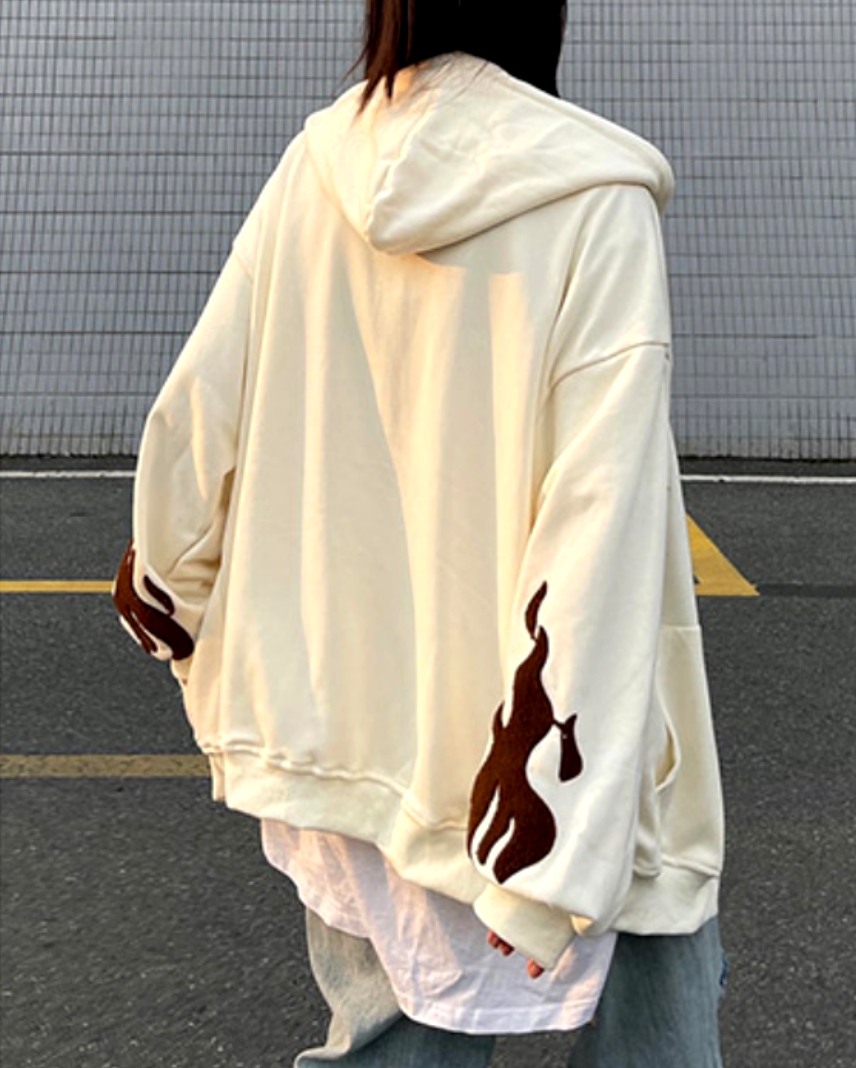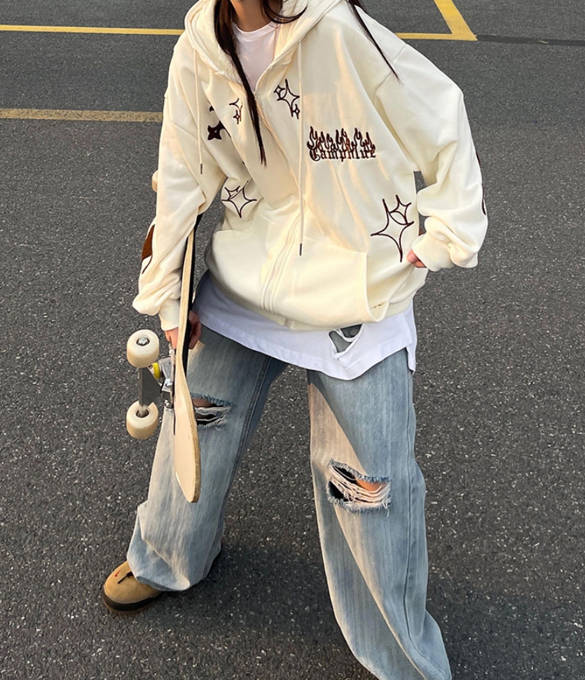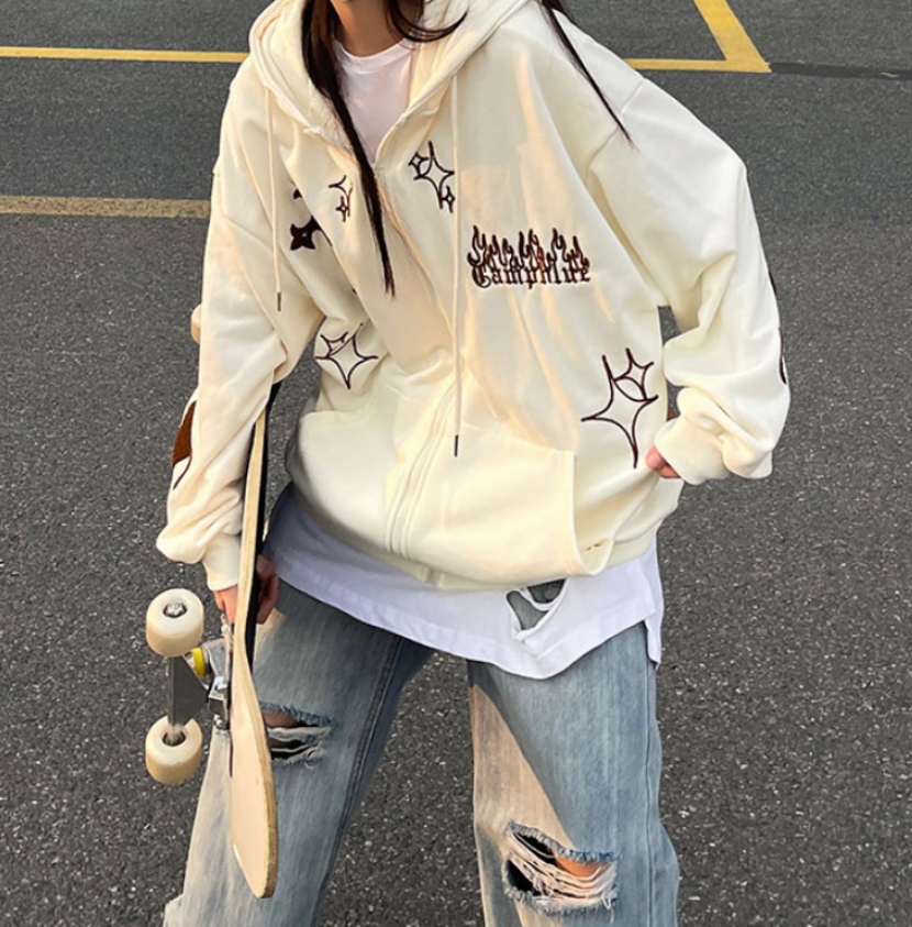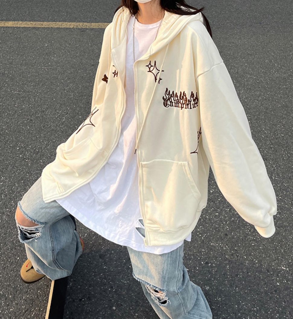 Vintage Goth Cross Embroidery Zipper Oversize Hippie Hoodie Jacket Streetwear