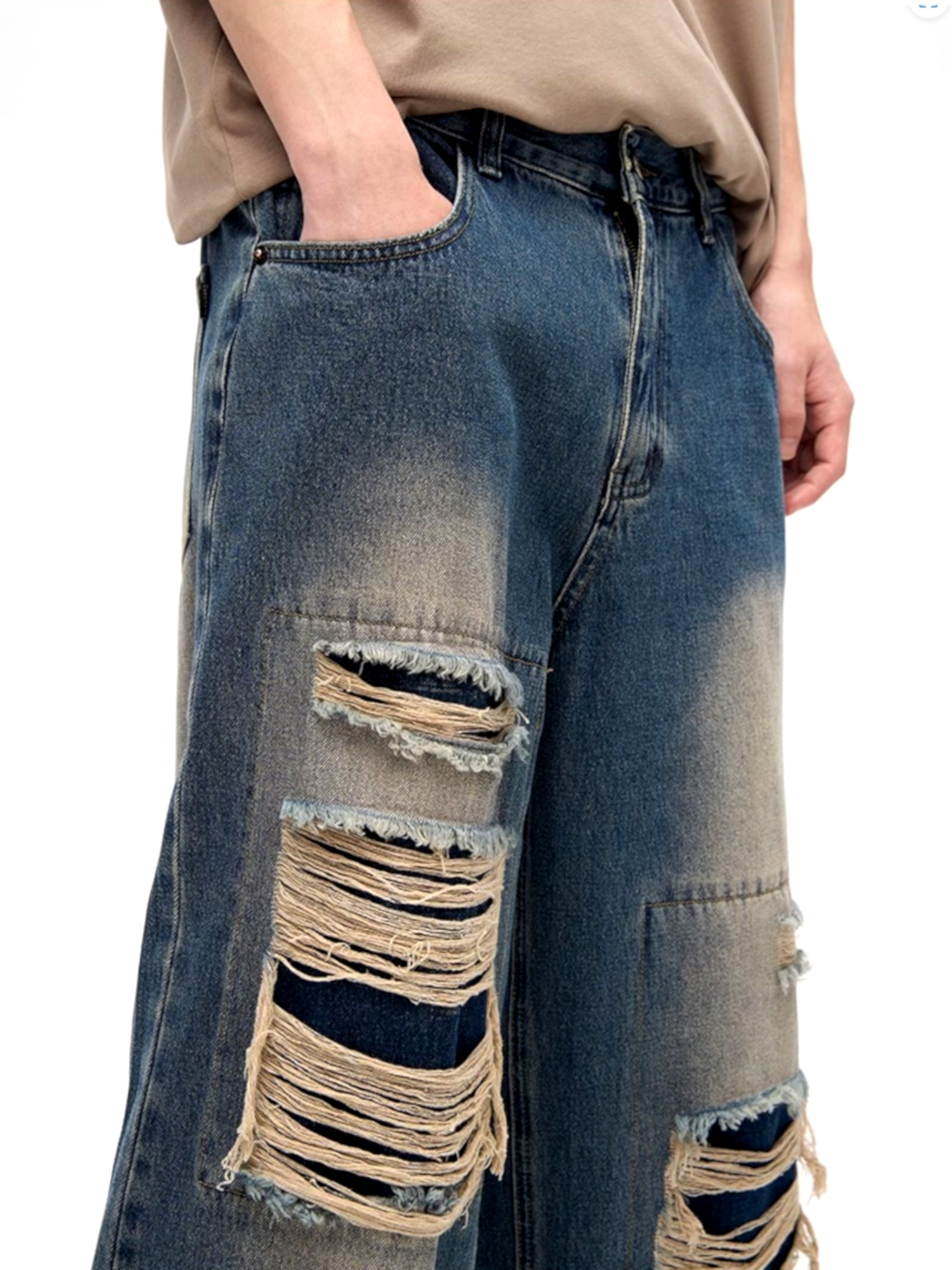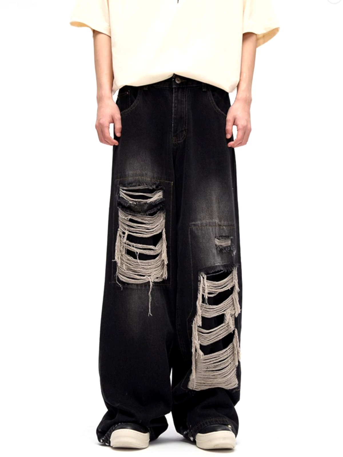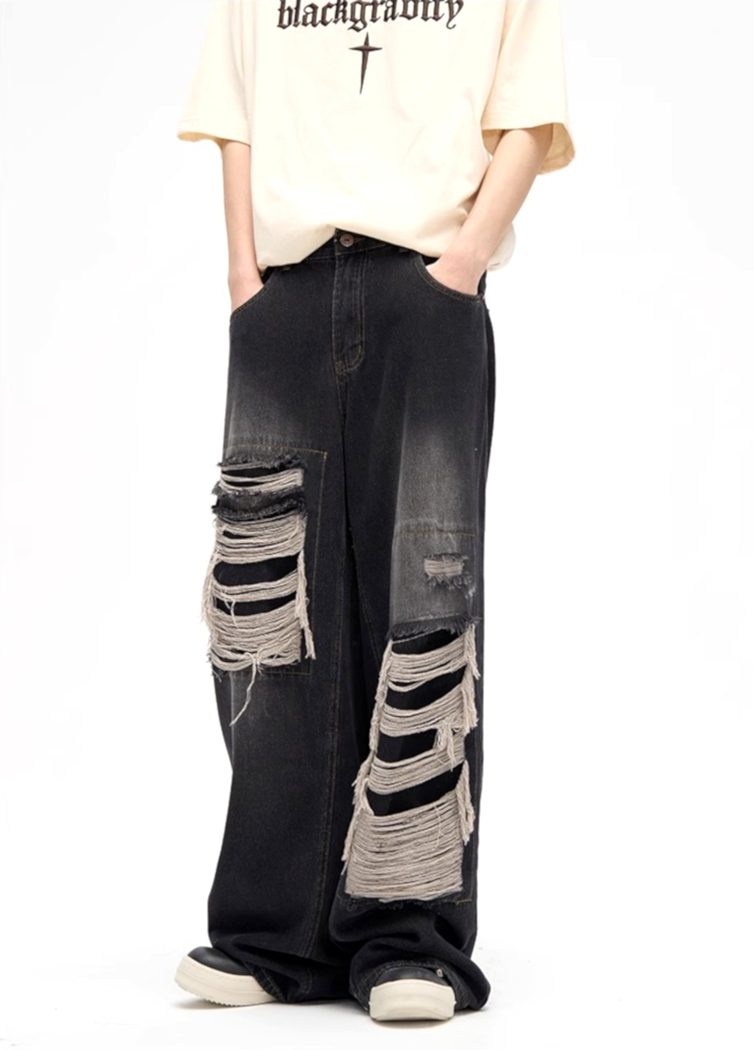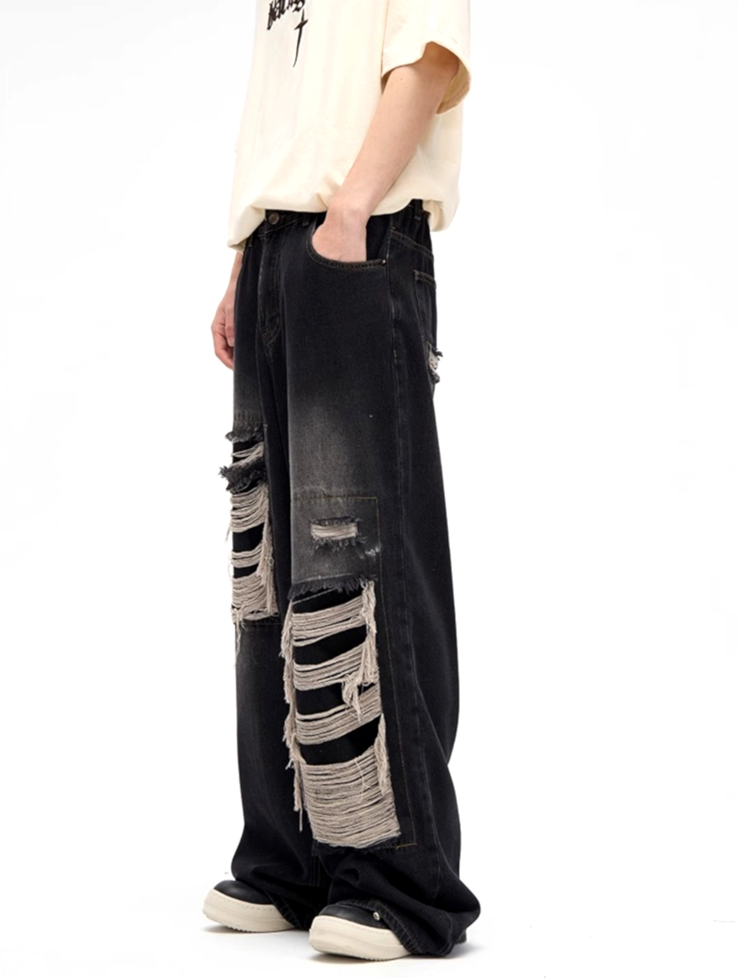 Stunning Punk Rock Ripped Oversize Washed Jeans Streetwear Rave Unique For Men Women Amazing
