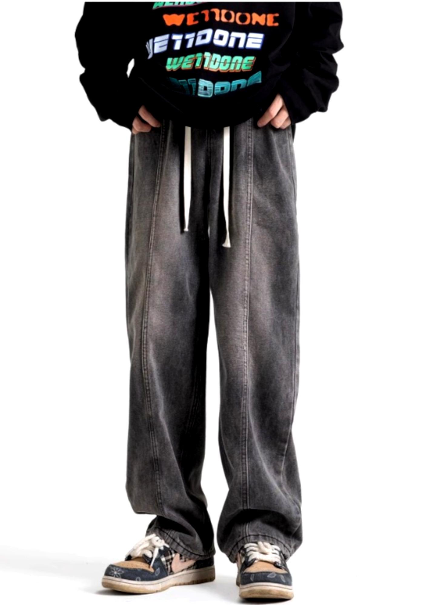Stunning Vintage Punk Chunky Drawstring Washed Oversize Pants Streetwear Rave Unique For Men Women Amazing