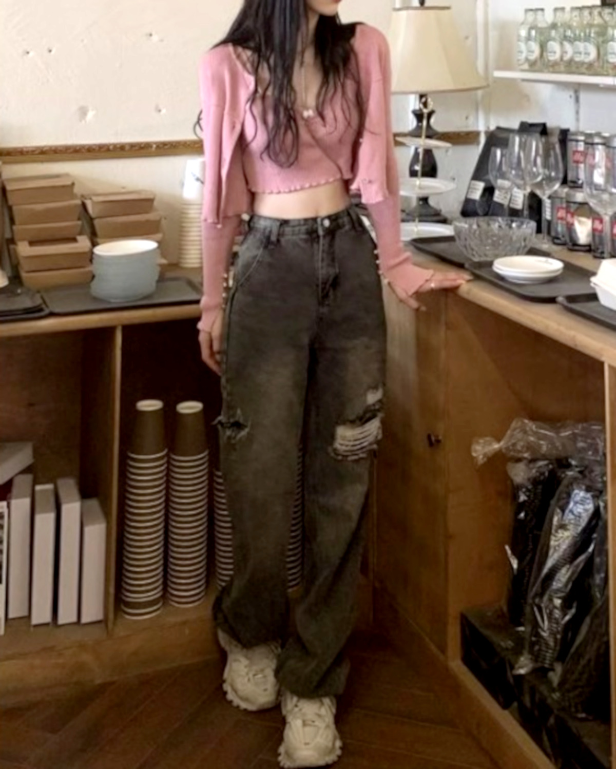 Stunning Punk Ripped Washed Jeans Pants Streetwear Rave Unique For Women Men Amazing