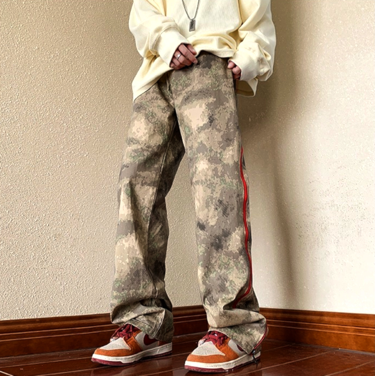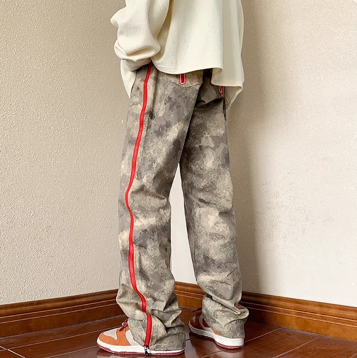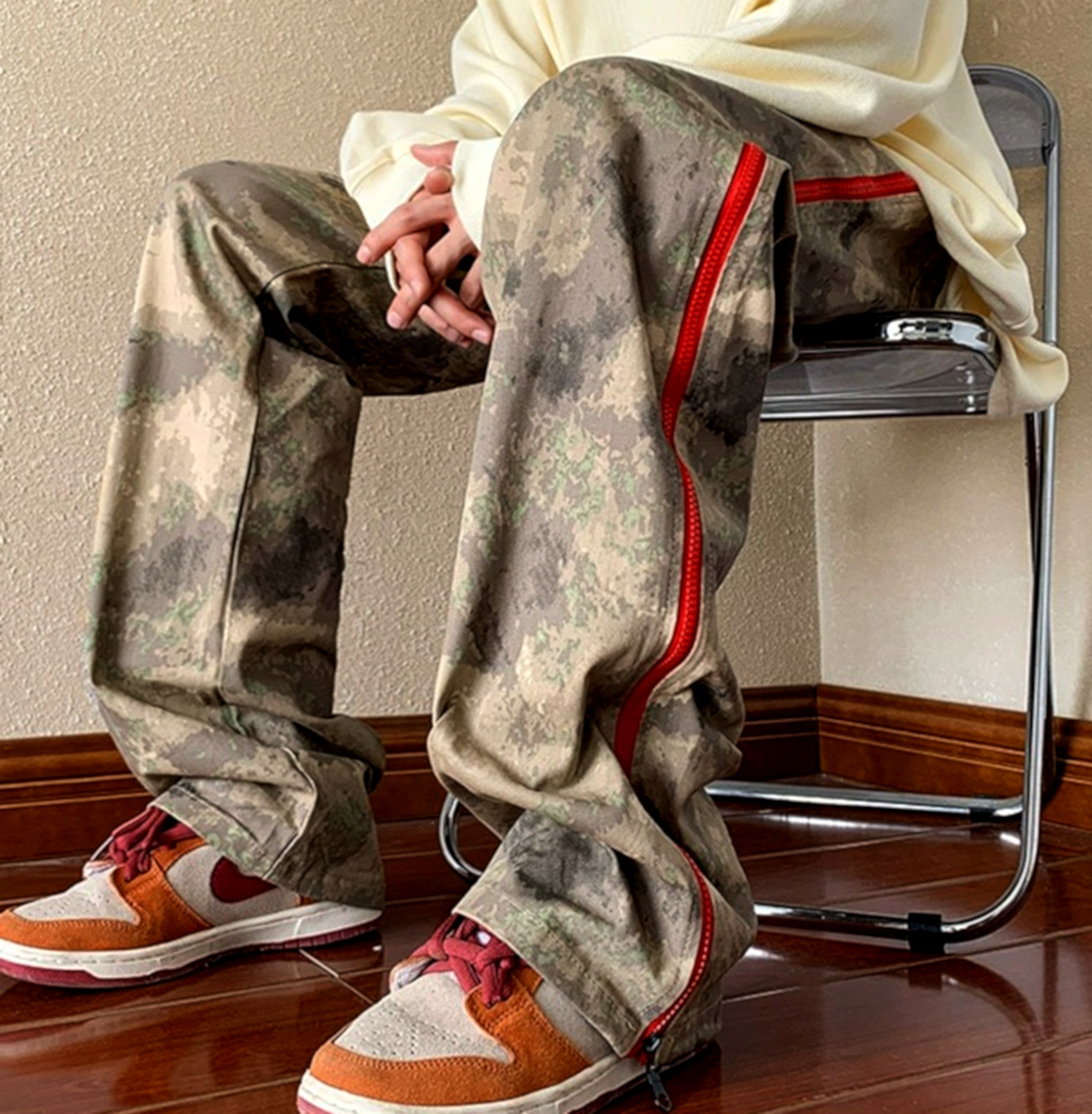 Stunning Punk Zippers Red Stripe Wide-leg Abstract Washed Pants Men Women Streetwear Rave Amazing