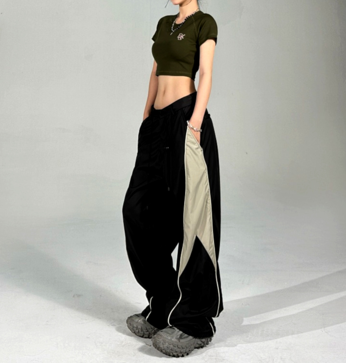 Stunning Punk Hippie Contrast Color Patchwork Wide-leg Pants Rave Futuristic Amazing