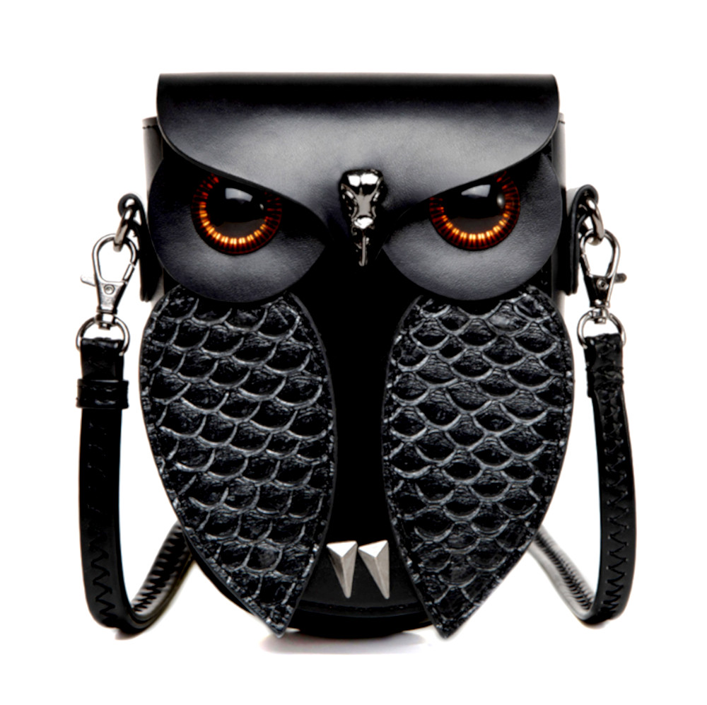 Vintage Punk Owl Rivet Emboss Nocturnal Bird Leather Crossbody Bag Streetwear Rave Amazing