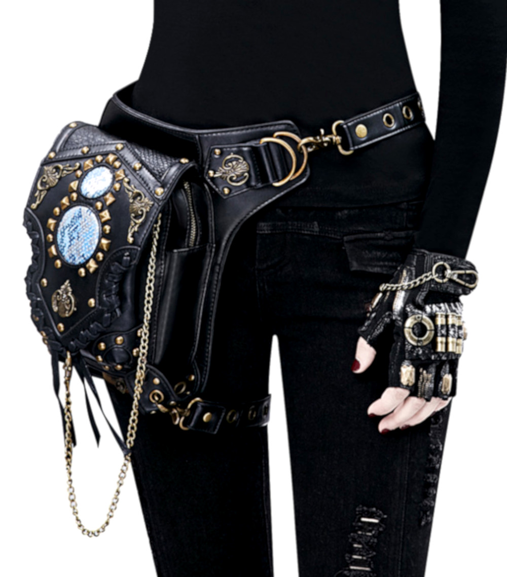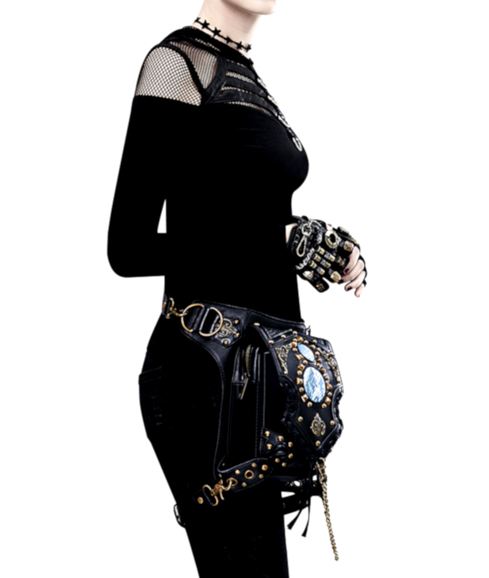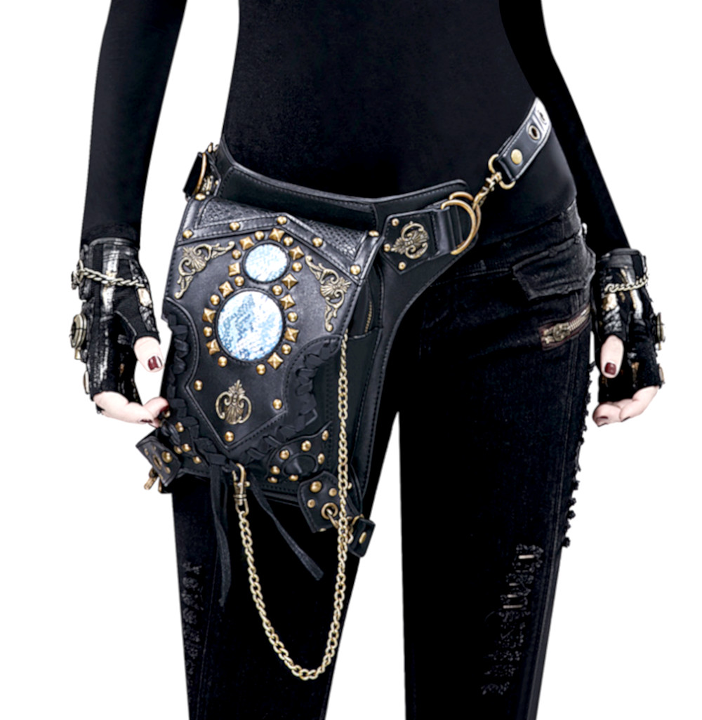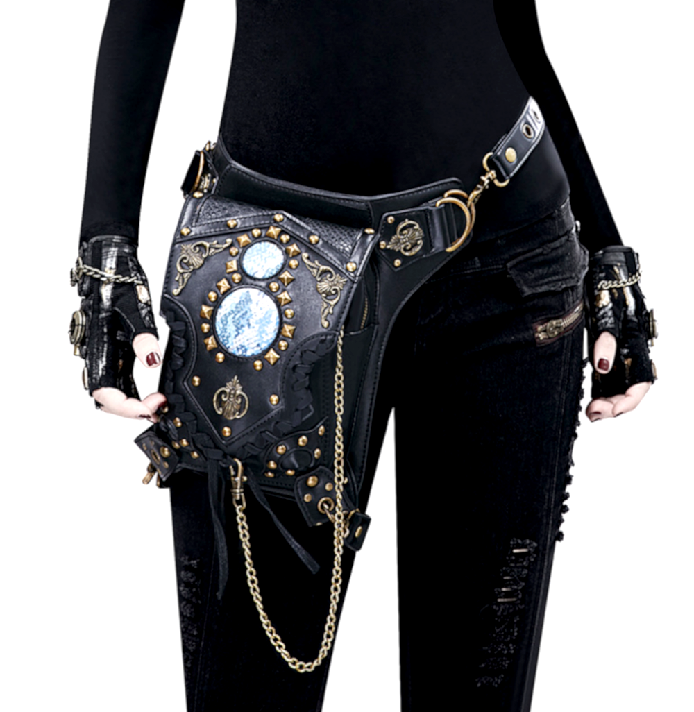 Stunning Vintage Punk Chevalier Steampunk Knight Chain Rivets Leather Bag Streetwear Rave Amazing