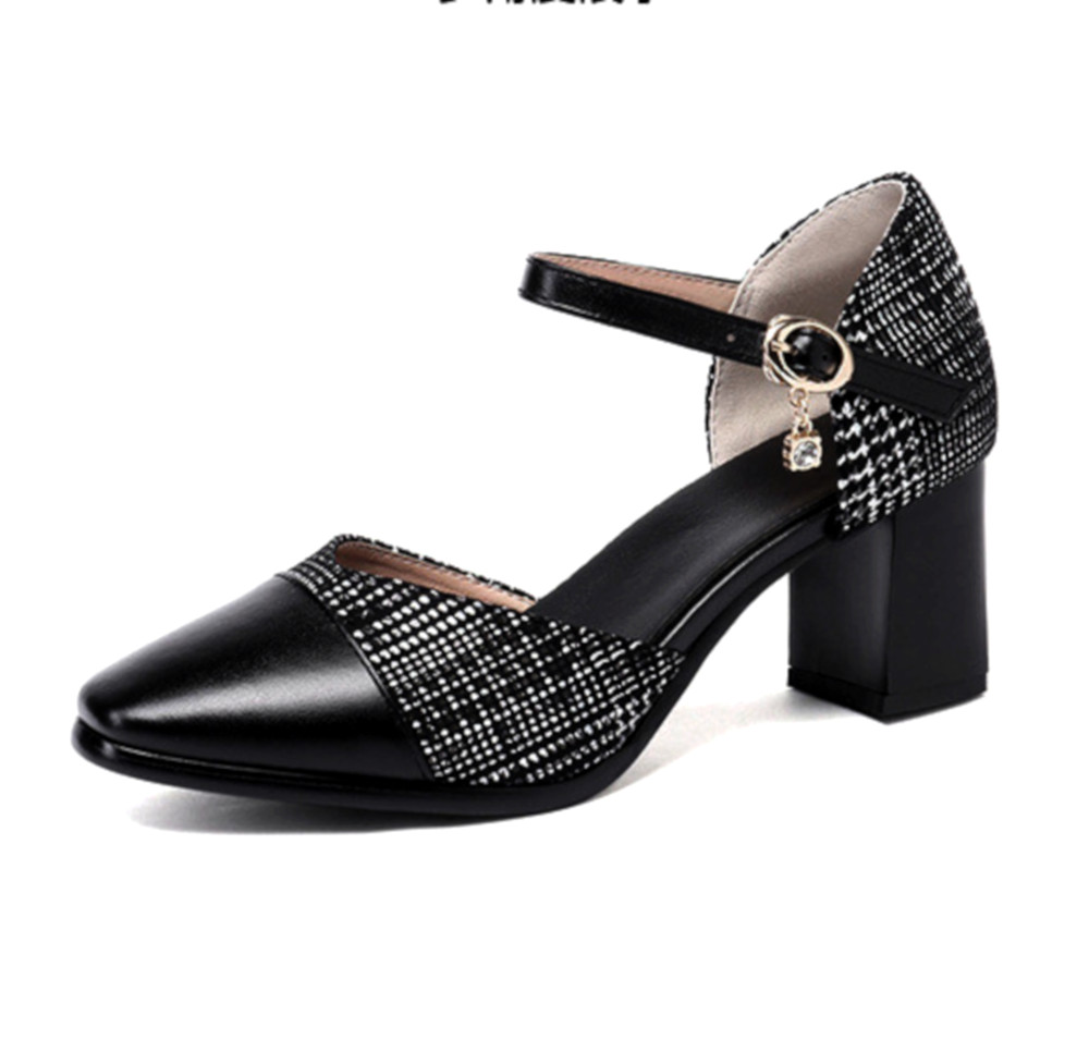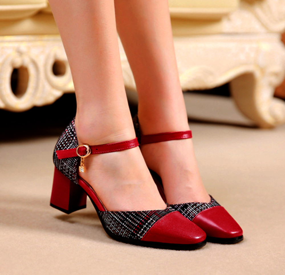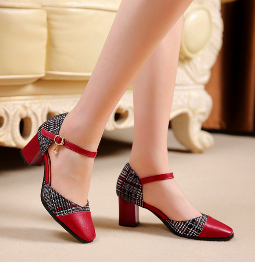 Stunning England Plaid Contrast Patchwork Point Toe Sandal Block Heels Patent Leather Shoes Deluxe Rave Awesome